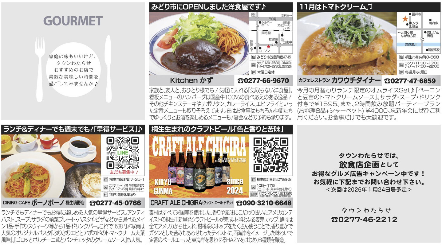 タウンわたらせ1080号(2025年11月1日)で掲載になったグルメ特集を公開します。期間限定商品などもありま…