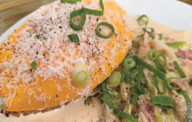 2月限定のベーコンと長ネギのクリームソースオムライス♪ サラダ・スープ・ドリンク付きで税込¥1,595。長ネギの旨味がしみるクリームソース+とろとろタマゴ=心がほっとするオムライスです♡ また、2時間飲み放題パーティープラン (お料理8品+シャーベット) ¥4,000。お食事だけでも大歓迎です。