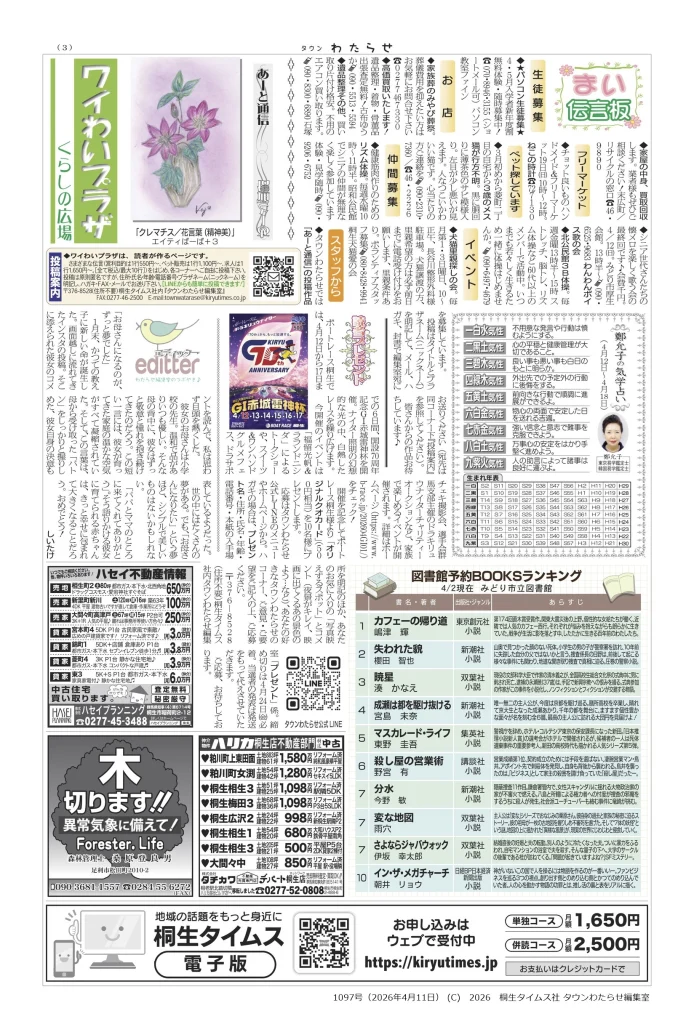 株式会社桐生タイムス社内 タウンわたらせ編集室「あーと通信」係