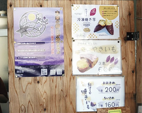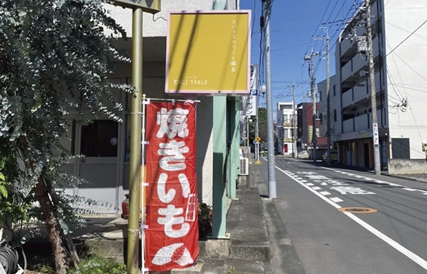 お芋が好きで、伊勢崎のお芋屋さんに弟子入りし、桐生で焼き芋屋さんを始めて10年。東小近くの駐車場で5年間営業したのち、カレー屋さん「カーリーテーブル」をオープンするタイミングで、同店の裏に移転しました。