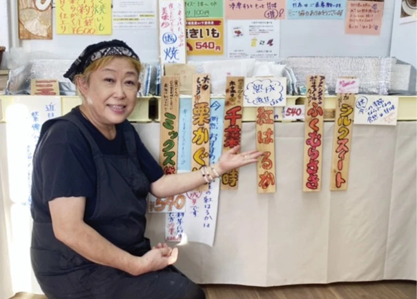 店長の上野幸子さんは「お客さまに喜んで召し上がっていただけるように、心をこめて焼き上げています」とやさしい笑顔。焼き芋の美容効果でしょうか、とてもお肌がきれいでした。