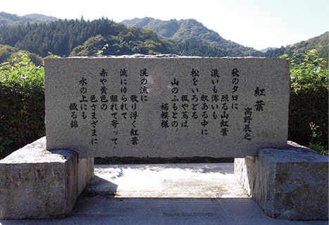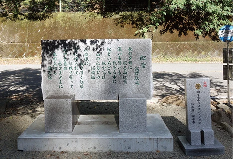 旧道・碓氷峠のメロディーラインの曲名は「紅葉」。作詞者の高野辰之(たかの・たつゆき/1876~1947年)さんが、碓氷峠にある信越本線熊ノ平駅(現在は廃線)から紅葉を眺め、その美しさに引かれてこの詞を作ったということから、碓氷峠にゆかりのある曲として選定されました。