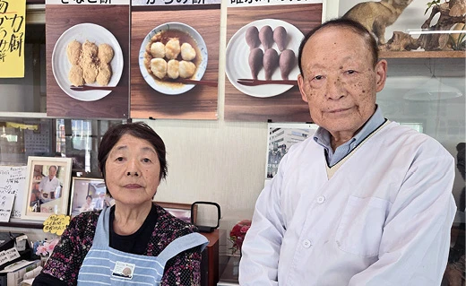この力もち、江戸時代、安中藩士が中山道を競走した際、振る舞われたというものが始まり。きっと、若い藩士たちの力の源になったんでしょうね。熊ノ平駅でも販売していたそうです。旧中山道沿いから、現在の地に移転したのは62年前のこと。現在は5代目の小池昭さん(78)、節子さん(78)が店を切り盛りしています。