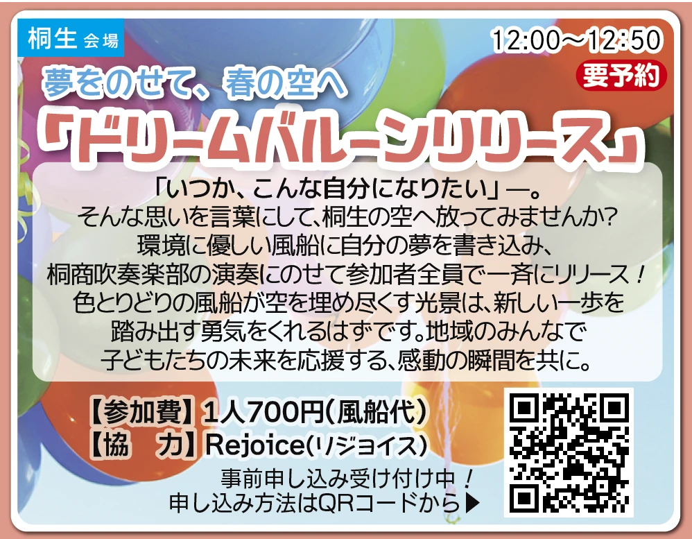 夢をのせて、春の空へ「ドリームバルーンリリース」(桐生会場) 要予約