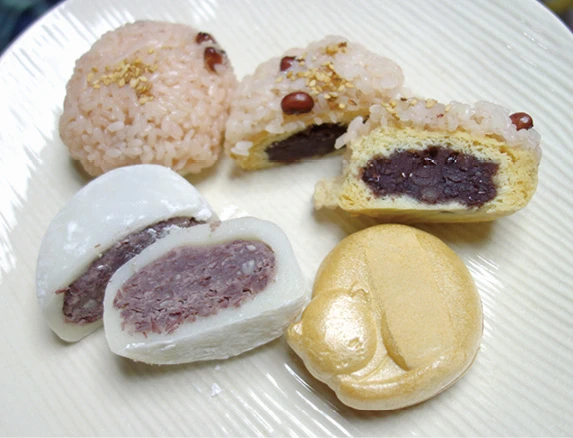 さて、その「いがまんじゅう」。見た目はまんじゅうに赤飯をまぶしたもの。赤飯が栗のいがのように見えることから、そう呼ばれるようになったとか。赤飯のもち米が高価なため、まんじゅうでかさを大きくみせたようです。北埼玉地方の食文化で、全国郷土料理百選にも選ばれているんだとか。同店のいがまんじゅうはこしあんとつぶあんがあり、どちらも1個200円。この日は、しょっぱい大福の塩あんぴん(1個250円)、ねこもなか(1個200円)を購入。帰宅後自宅でいただきました。いずれも大変美味、ごちそうさま!