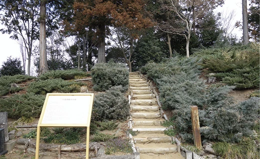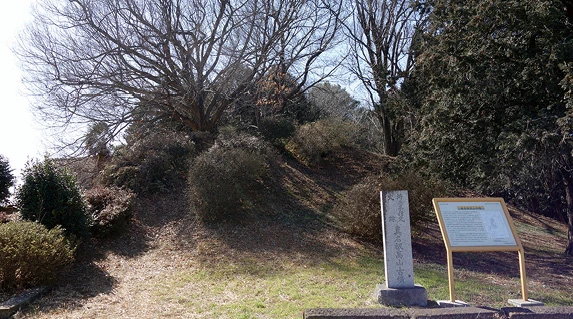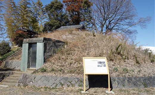 2カ所目は地蔵塚(じぞうづか)古墳。真観寺からは2㌔、5分。住宅街の一角にありました。見た目は盛り土された、小高い丘のような感じです。