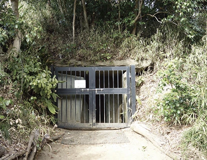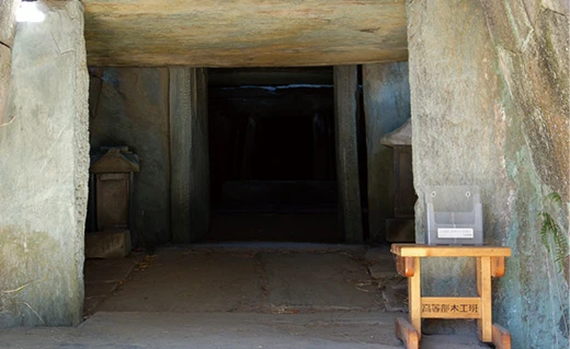 古墳は本堂裏手、墳の頂上まで階段で上ることができます。階段向かって右手には、横穴式の石室があり、中に入って見学できました。