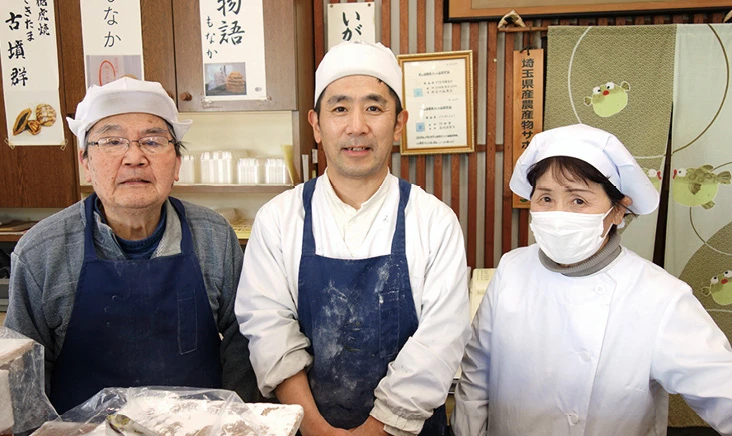 前玉神社参道横に店を構える金沢製菓さん。ガラス戸にはられた「いがまんじゅう」の文字に引きこまれるように店内へ。いがまんじゅうとは何ぞや? 創業安政5年(1858年)、現在6代目という店主の金沢優(かなざわ・まさる)さんにお聞きしました。