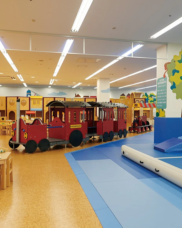 広いワンフロアに思い切り体を動かすゾーンと、じっくり遊びこむゾーンを併せ持つキッズピアあしかが。子供がどこで遊んでいても目が届きます。