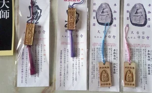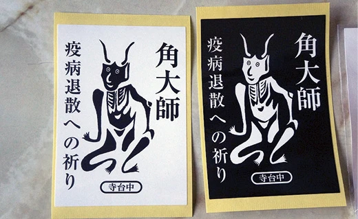 ご朱印はお願いすれば書いていただけるとのこと。境内には、疫病退散の「角大師(つのだいし)」のお守りやステッカーもあります。角大師とは、魔を払うとされる慈恵大師・良源(元三大師)の変化身で、平安時代に疫病が流行した折、良源が現れた疫病神を退け、その姿を弟子に写させたのが由来です。この札を戸口に貼ると、疫病や厄災が寄り付かないといわれています。詳しいお話は、ぜひ須藤住職にお尋ねください。