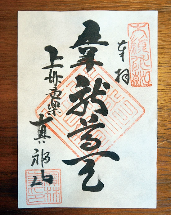 ご朱印は、金色の切り絵による韋駄天像のものや住職自筆のものなど、数種類が用意されています。