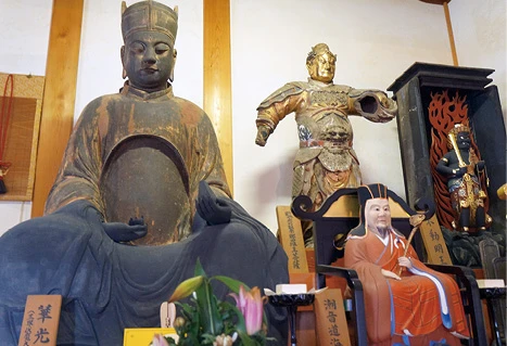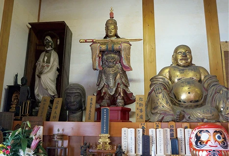本堂正面に入ると、中央に本尊の南無釈迦牟尼佛を安置し、両側に諸尊像が並びます。これらは「宝林寺彫像群」として群馬県重要文化財に指定されています。また、本堂側面には、江戸時代前期に館林を中心に活躍した黄檗宗の高僧・潮音道海禅師の肖像画があり、町指定重要文化財となっています。さらに本堂右奥に位置する宿坊では、座禅や写経などの体験ができます。